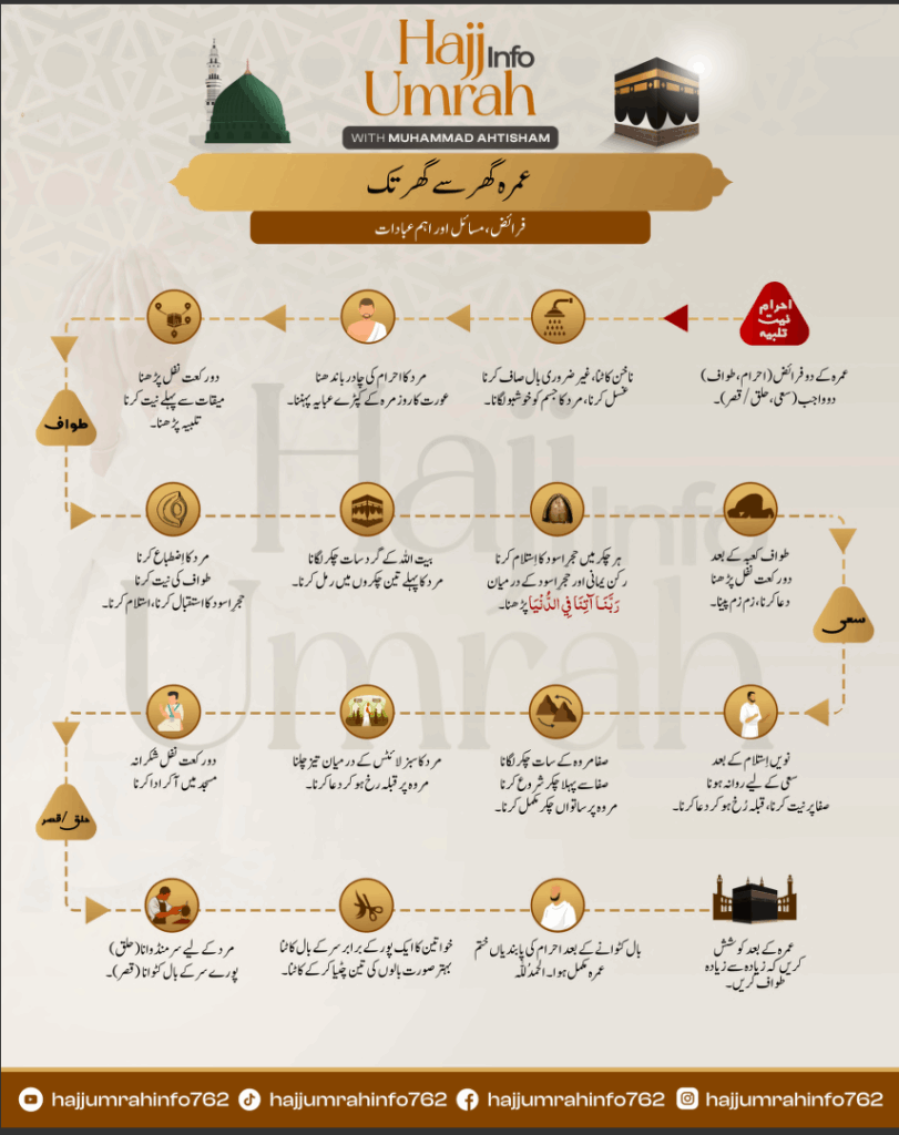 الله پاک کی مہربانی سے آپ سب کے لیے عمرہ کی مکمل اور آسان رہنمائی کی کتاب تیار کی گئی ہےجس کا نام عمرہ گھر سے گھر تک ہے۔ اس کتاب میں آپ کو عمرہ کا ہر مرحلہ واضح طریقے سے ملے گا۔ آپ گھر سے نکلتے ہیں، احرام باندھتے ہیں، نیت کرتے ہیں، طواف […]